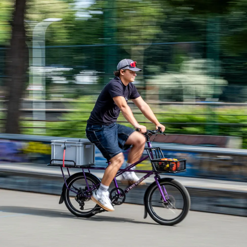 The small 20-inch wheels, the very low luggage rack and the frame of unparalleled rigidity thanks to its unique architecture make the Petit Porteur Shorty a light, lively and precise cargo bike, easy to use and handle.